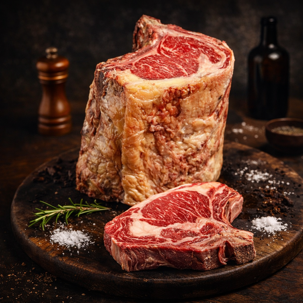 La carne de vaca madurada durante 50 días ofrece un sabor más profundo y sofisticado, con una ternura extrema y una jugosidad concentrada. Este tiempo adicional de maduración intensifica los aromas naturales de la carne y mejora su digestibilidad, permitiendo una experiencia más placentera al comer. Ideal para quienes buscan una carne exclusiva, más sabrosa y de calidad gourmet.